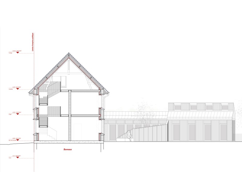 La Tribu Du Sujet est un lieu d’exercice commun pour une dizaine de praticiennes œuvrant en complémentarité pour l’accompagnement de leurs patients. Ce groupe dynamique, fort d’un développement prometteur et soutenu par la commune, se projette dans la rénovation et l’extension de son espace. La maison voisine est acquise par la nouvelle SCI et divisée en trois lots : la nouvelle tribu, un local commercial et un terrain à bâtir. Le projet est également l’occasion d’une mise en conformité vis-à-vis des règles d’accessibilité et de sécurité incendie pour les ERP.