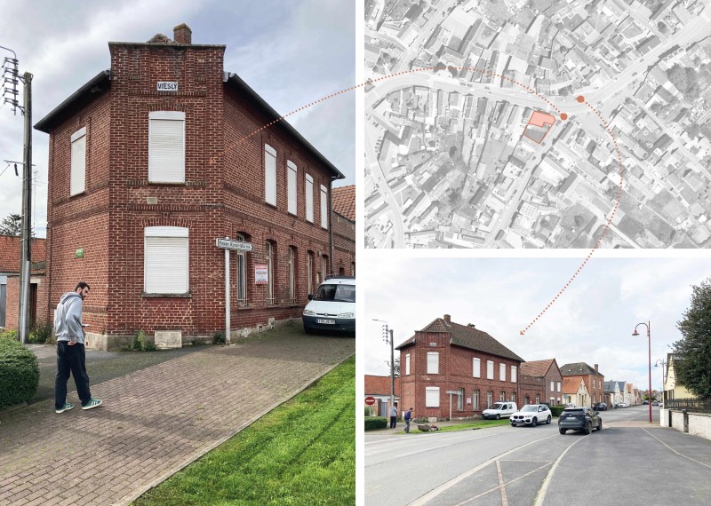 Se dressant fièrement à l’angle de la rue de la mairie et de la rue Pasteur, le pignon caractéristique des bureaux de poste des bourgs ruraux se tient au côté d’un curieux rang d’habitations implantées en éventail, orthogonalement à la rue. Inoccupé depuis le départ de la Poste, la bâtisse a été acquise pas un couple de particuliers souhaitant y déployer un programme de trois logements.