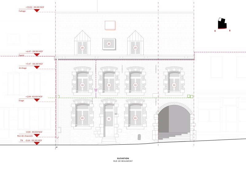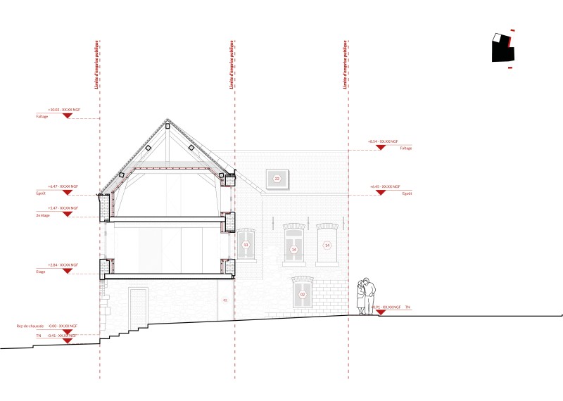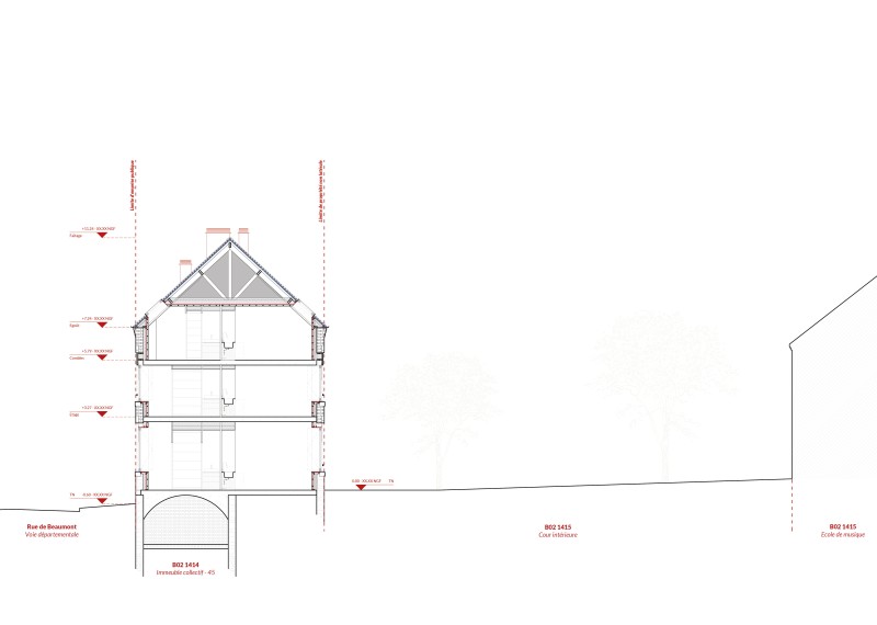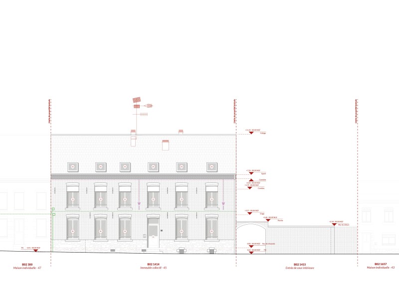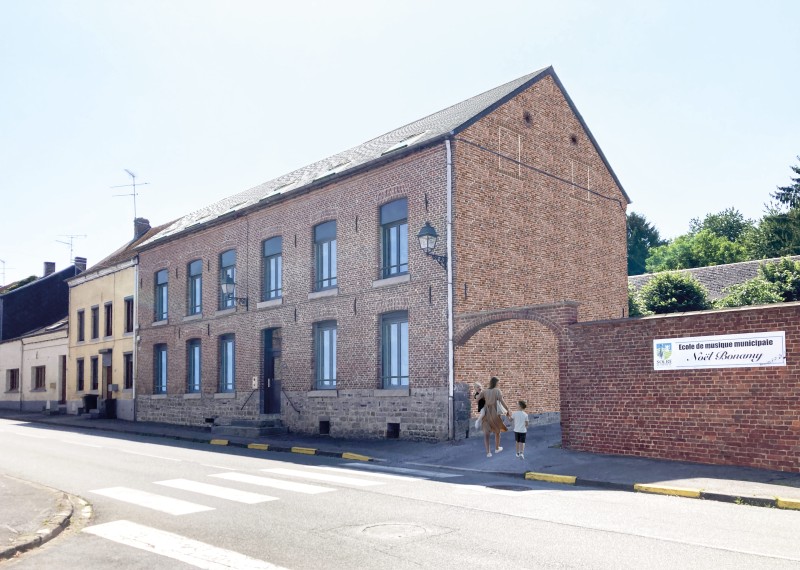 La conception, bien consciente de ces enjeux, propose des ouvrages précis et des restructurations ciblées valorisant le savoir-faire local : brique et pierre d’Avesnes de réemploi, matériaux biosourcés et campagne de reprise d’étanchéité à l’air pour parvenir à un niveau BBC Rénovation.