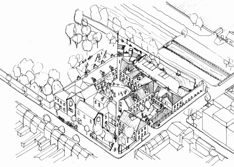 En ouvrant le bâti au quartier, à la ville et au territoire, la faille creusée dans le couvent a dépassé l’intuition architectonique pour nourrir le phasage du projet. Les volumes générés reçoivent un traitement différencié: l’aile sud-ouest devient un Signal dans la ville accueillant des expositions et des rencontres culturelles, livré dès 2020 ; les ailes nord et est du carré claustral sont restaurées dans les règles de l’art; les ailes est et sud sont livrées brutes à finir par leurs acquéreurs.