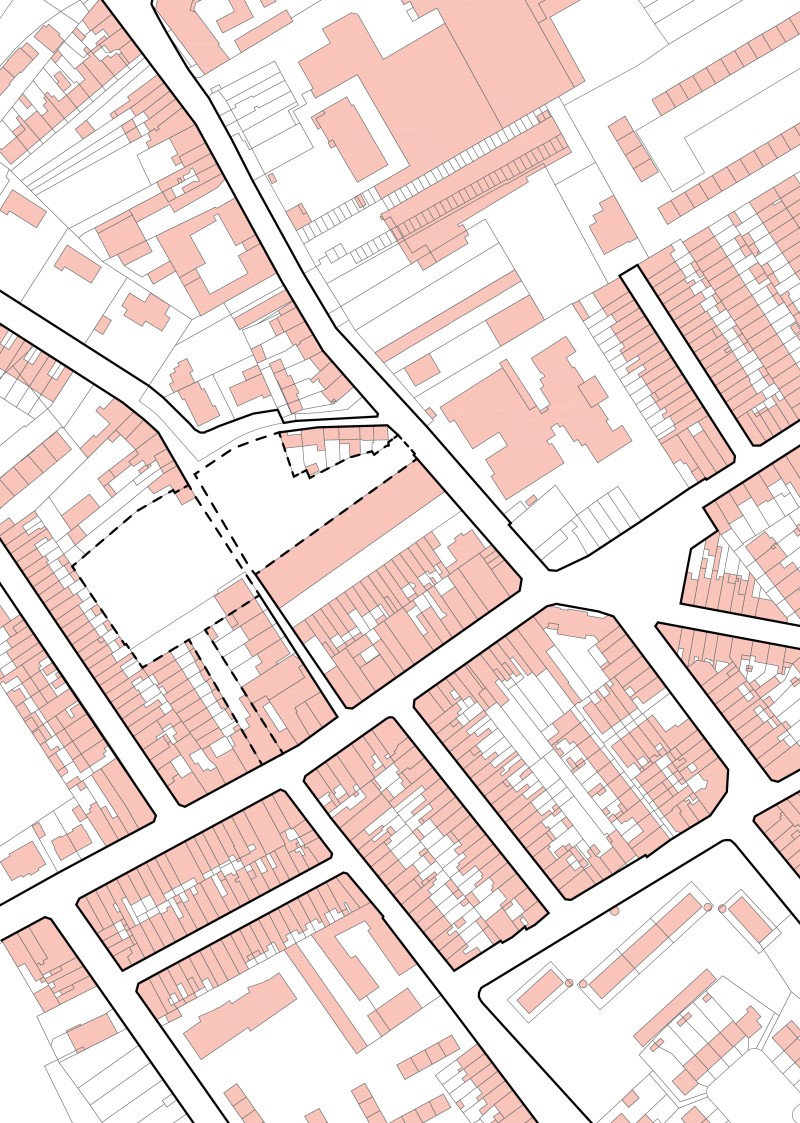 L’implantation est sensible aux marqueurs locaux. Les perspectives urbaines et les lignes directrices s’harmonisent et réagissent aux formes urbaines et aux implantations existantes. Une liaison est rendue possible avec la courée au sud. A des horaires déterminés, cette communication relierait le quartier à l’école et à la rue Castermant. La maison bourgeoise à l’angle Boieldieu-Patriotes devient un marqueur référent pour l’implantation et la morphologie du collectif du lot 1. Les stationnements sont gérés à la parcelle ou en cour stationnée. Ils offrent des percées visuelles sur le cœur d’îlot. Une liaison est créée entre le lot 1 et le lot 2 : les enfants des habitants du lot 2 pourront, aux horaires choisis, traverser le lot 1 pour rejoindre ou rentrer de l’école. L’implantation favorise le jumelage, les percées visuelles sur le cœur d’îlot et les harmonies volumétriques avec l’existant.