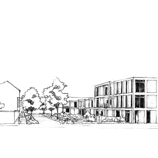 La rénovation énergétique s’effectue suivant la méthodologie ENERGIESPRONG de massification industrielle de l’amélioration des performances. L’actualisation des performances thermiques par la réhabilitation énergétique est l’occasion de renouveler l’écriture architecturale du parc du MOA. La composition prévoit un bouquet travaux adapté et intègre les dispositifs techniques induits par la présence de propriétaires occupants dans les rangs d’habitations. Le dessin des façades, en adoptant une écriture classique mais contemporaine, parvient à s’inscrire dans le paysage urbain : calepinage soigné, vibration des façades, soubassements, niveaux soulignés par des changements subtils de mise en œuvre et de rythme, sobriété.