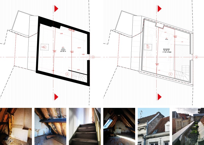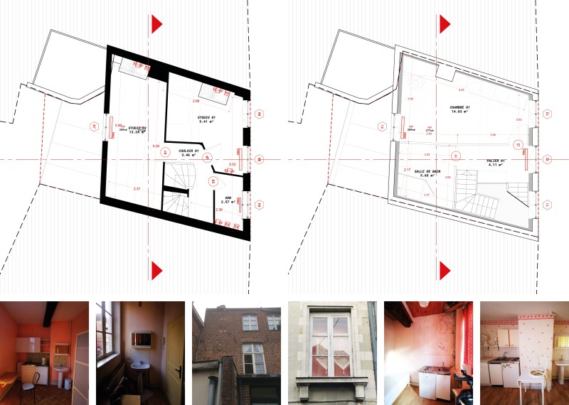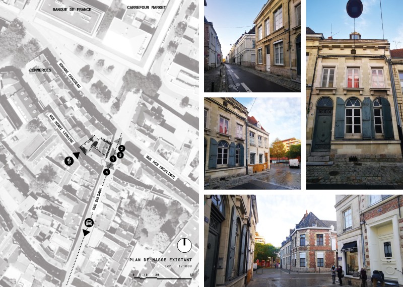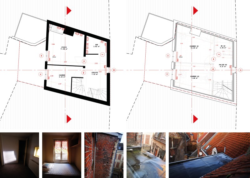La bâtisse, fortement dégradée, a fait l’objet d’un classement aux Monuments historiques pour sa façade et sa couverture. Le second-œuvre et les charpentes ont été saccagées par des rénovations antérieures et la bâtisse est en arrêté de péril. Outre l’actualisation nécessaires des performances thermiques, le projet doit restaurer l’écriture architecturale de la bâtisse sans renoncer à la contemporanéité des usages et du plan.