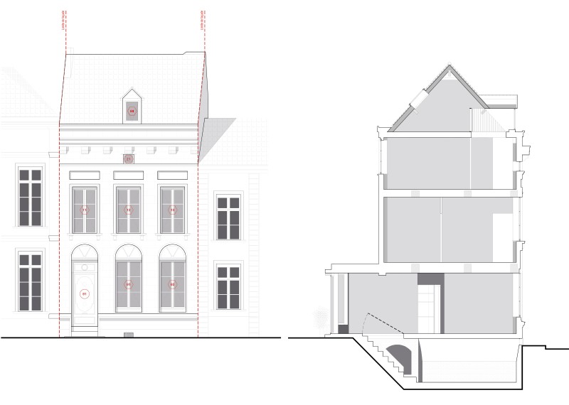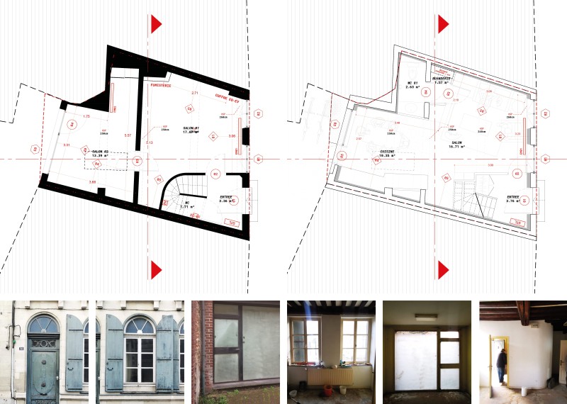 L’opération a fait l’objet d’un suivi rapproché de l’Architecte des Bâtiments de France et des Monuments Historiques. La restitution de la façade, de la lucarne en toiture, le réemploi de la porte et la mise en œuvre de menuiseries à petits bois et meneaux conformes au dessin historique ont permis de lever les réserves des prescripteurs en amont du dépôt des demandes d’autorisation d’urbanisme.