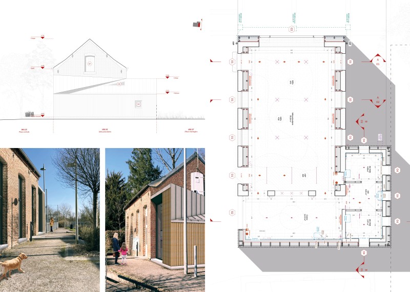 Les bâtisses, ordinaires, présentent les traceurs constructifs récurrents de l’Avesnois et des qualités architecturales réelles. Les épais murs de pierre et de brique de terre cuite, caractéristiques, sont mis en valeur par un contraste avec une composition contemporaine des extensions neuves, jouant de plis et de nuances de bardages et de pentes. Les baies sont ouvertes de sorte à créer autant de perspectives sur l’environnement et d’occasions de magnifier les maçonneries.
