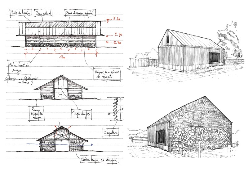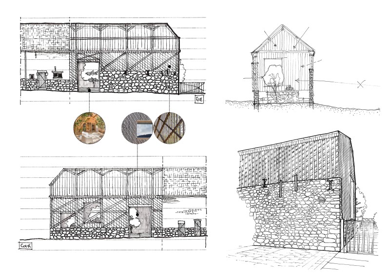 - Conservation des traceurs territoriaux : maintenir et réhabiliter ce qui peut l’être, et conserver une trace esthétique et fonctionnelle de l’usage passé, notamment pour la ferme.