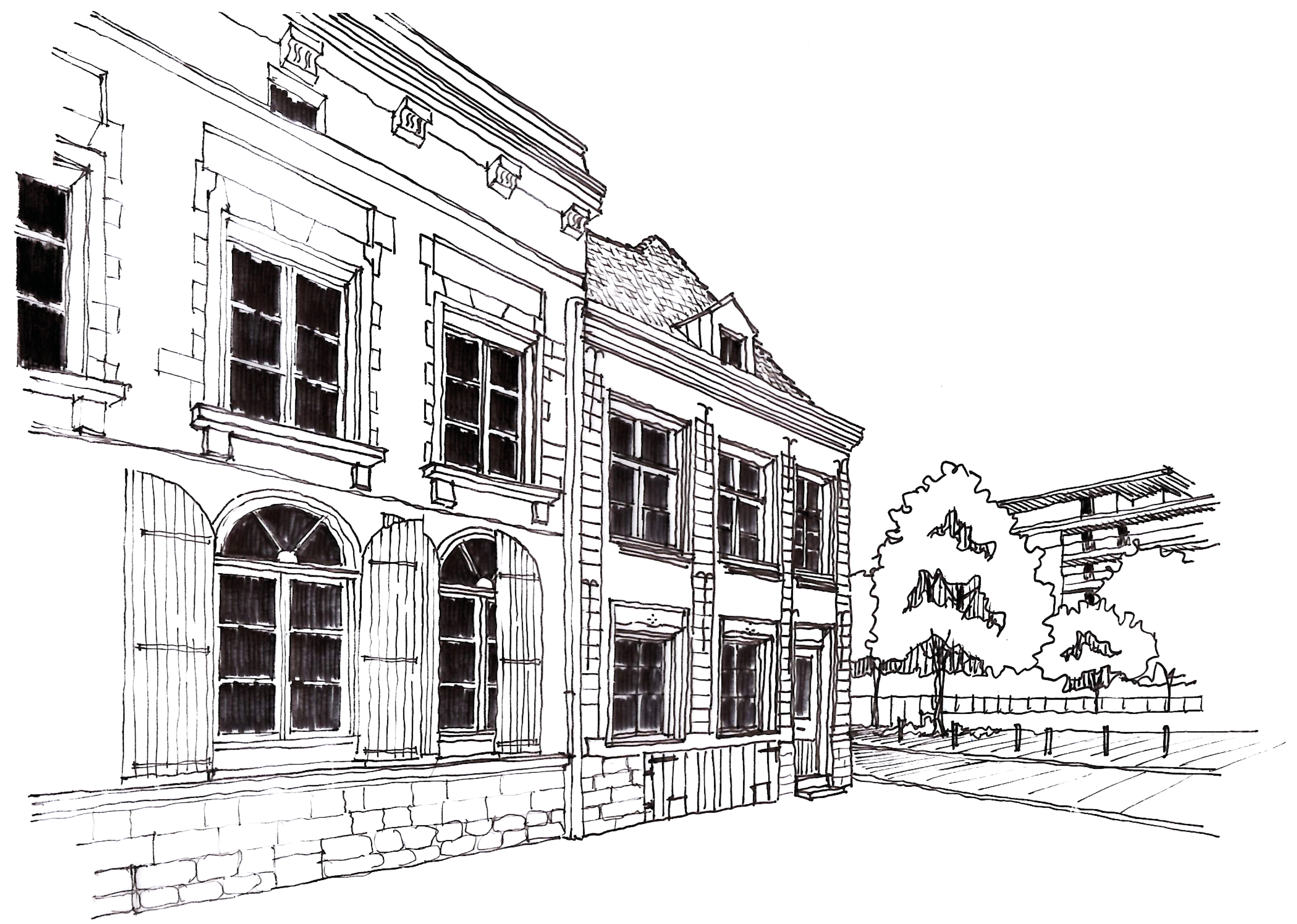 - Une volumétrie complexe avec un registre riche, notamment dans les toitures : brisis, rampants, mixtes, pignons glamands, chien-assis, loggias.